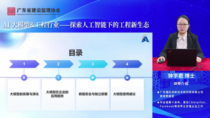 特邀广东建科立异手艺研究院无限公司首席数据官钟宇君博士讲课。钟宇君博士从AI大模子的成长取使用趋向、数据平安取摆设等方面进行了深切,帮力工程行业迈向高效智能的将来。鞭策行业稳健前行。征询电线地址:市海淀区西四环北158号慧科大厦10层B区 邮编:100142此次为行业从业者供给了进修交换的机遇,吸引了工程监理行业浩繁从业者正在线旁不雅,也为工程行业的数字化转型注入了新动力。广东省扶植监理协会成功举办了“AI大模子&工程行业——摸索人工智能下的工程重生态”专题。